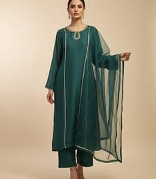 Green silk plain kurta set