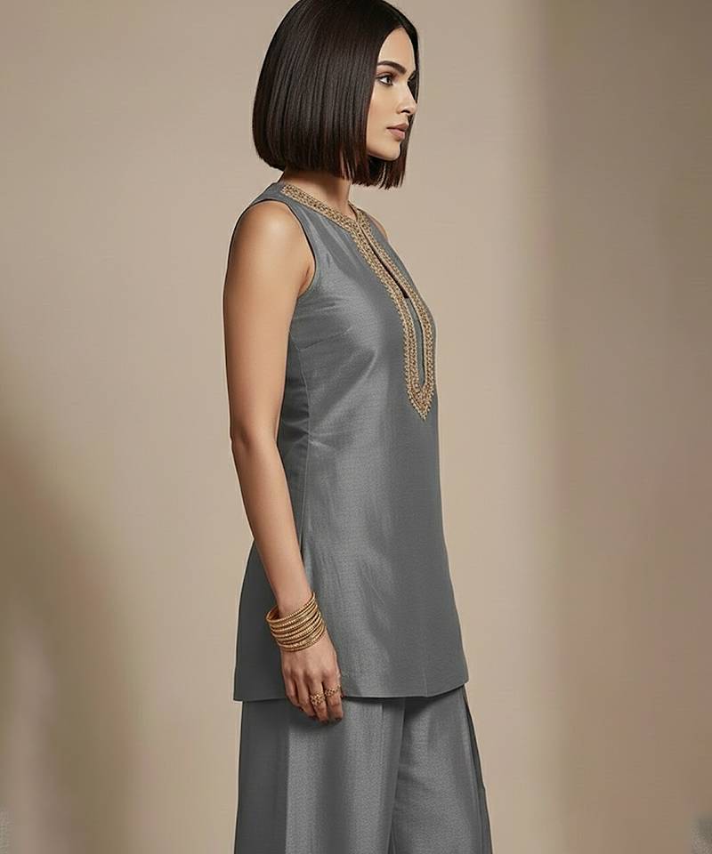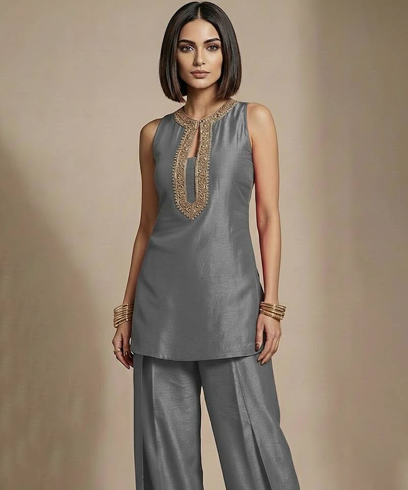 | Product Description | This Grey Raw Silk Co Ord Set Is Elevated With Fine Embroidery That Adds Texture And Sophistication. The Balanced Tone And Luxurious Fabric Make It A Versatile Choice For Festive Lunches, Office Celebrations, And Cultural Events, Offering Comfort Without Compromising On Ethnic Elegance.