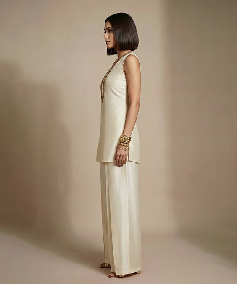 | Product Name | Ivory Embroidered Raw Silk Co Ord Set | |