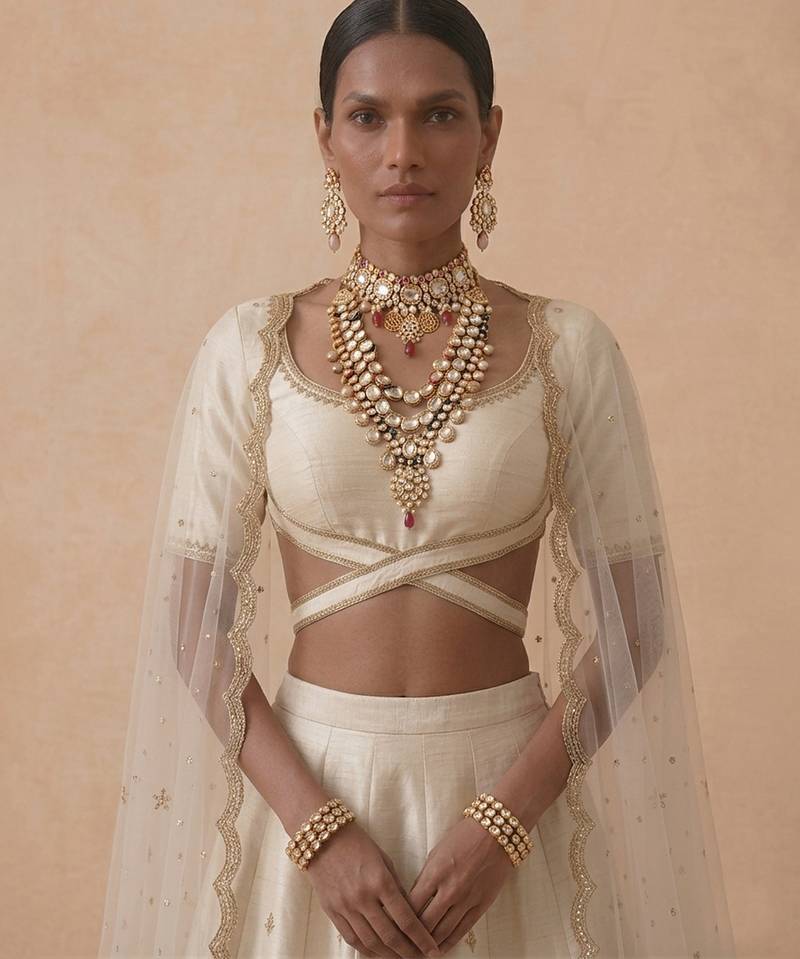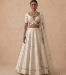 Product Name Ivory Embroidered Raw Silk Lehenga Set