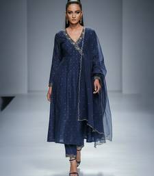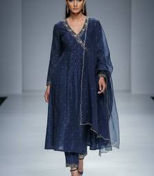 Navy blue chanderi embroidered kurta set