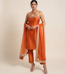 Orange embroidered silk kurta set