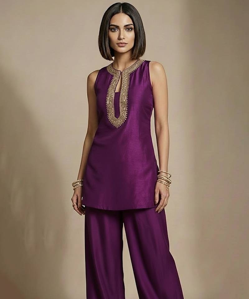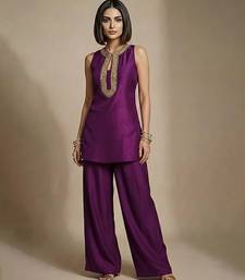 | Product Description | A Vibrant Purple Raw Silk Co Ord Set Adorned With Intricate Embroidery For A Royal Finish. The Lustrous Fabric And Rich Color Bring Festive Charm, While The Contemporary Co Ord Design Ensures Ease Of Wear. Perfect For Celebrations, Family Functions, And Evening Ethnic Looks.
