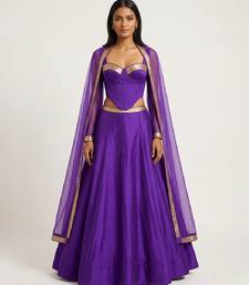 | Product Description | This Purple Silk Lehenga Set With A Corset Top Offers A Stylish And Structured Silhouette. The Luxurious Fabric Enhances Its Elegant Appeal, Making It Perfect For Modern Festive Occasions. Pair It With Statement Jewelry For A Bold And Fashionable Look.