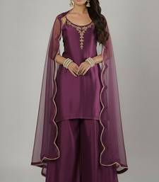 Purple silk embroidered kurta set
