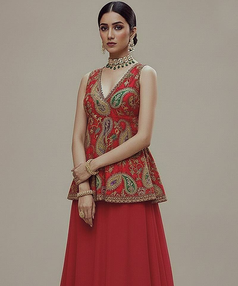 | Product Description | This Red Printed Embroidered Crepe Co Ord Set Showcases A Sleek Silhouette With Elegant Detailing. The Smooth Crepe Fabric Ensures Comfort And A Flattering Fit, While Intricate Embroidery Enhances Its Festive Appeal. Perfect For Celebrations, Parties, And Special Occasions, It Blends Modern Style With Traditional Charm Effortlessly.