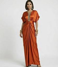 | Product Name | Rust Orange Embroidered Satin Silk Kaftan | |