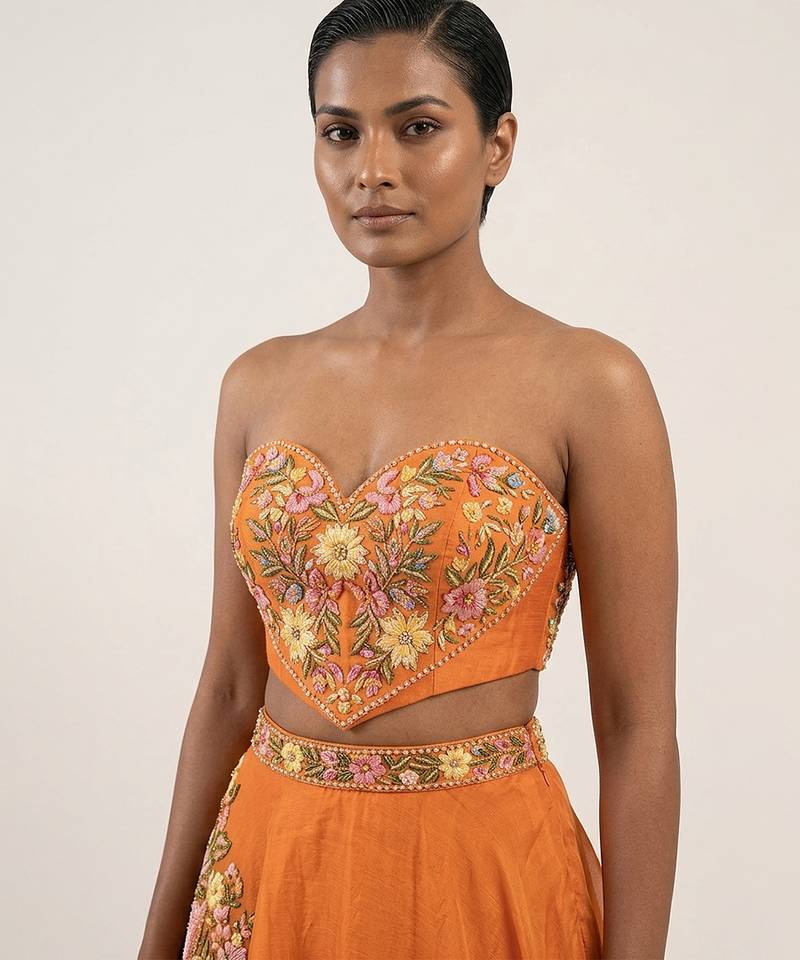 | Product Description | This Tangerine Orange Raw Silk Lehenga Set Features Vibrant Embroidery That Enhances Its Festive Appeal. The Rich Fabric Offers Structure And Elegance, Creating A Flattering Silhouette. Ideal For Celebrations, It Pairs Beautifully With Traditional Jewelry For A Bold And Radiant Look.