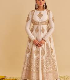 | Product Description | This Ivory Embroidered Silk Anarkali Set With Jacket Exudes Regal Elegance And Timeless Sophistication. Crafted From Luxurious Silk, It Features Intricate Embroidery That Enhances Its Refined Appeal. The Flowing Anarkali Paired With A Beautifully Tailored Jacket Creates A Graceful Silhouette, Making It Perfect For Weddings, Festive Celebrations, Or Special Occasions.