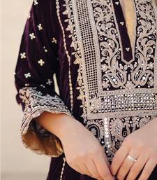 | Product Description | This Long A Line Ensemble Is Crafted From Luxurious Pure Silk Velvet, Paired Elegantly With A Matching Salwar. The Outfit Features A Chic Zero Neck With A Placket And Three Quarter Bell Sleeves, Creating A Graceful Yet Modern Silhouette. Adorned With Exquisite Kirandori Embroidery And Sparkling Sitaara, It Adds An Opulent Touch Of Craftsmanship. The Entire Look Is Completed With Delicate Pure Tissue Fabric And Intricate Kinari, Offering A Refined And Sophisticated Finish For Any Special Occasion.