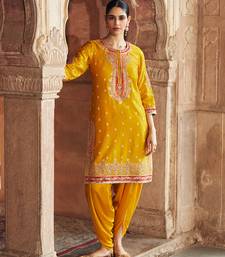 Mustard embroidered chanderi silk kurta set