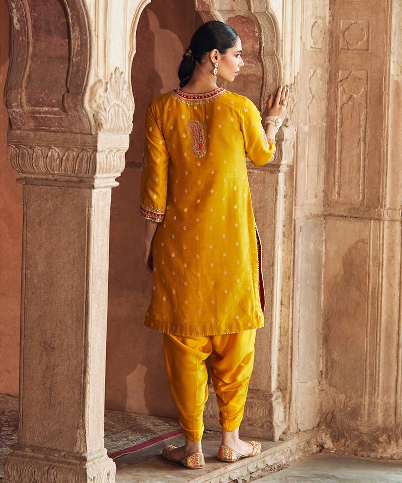 Product Name | Mustard Embroidered Chanderi Silk Kurta Set | |