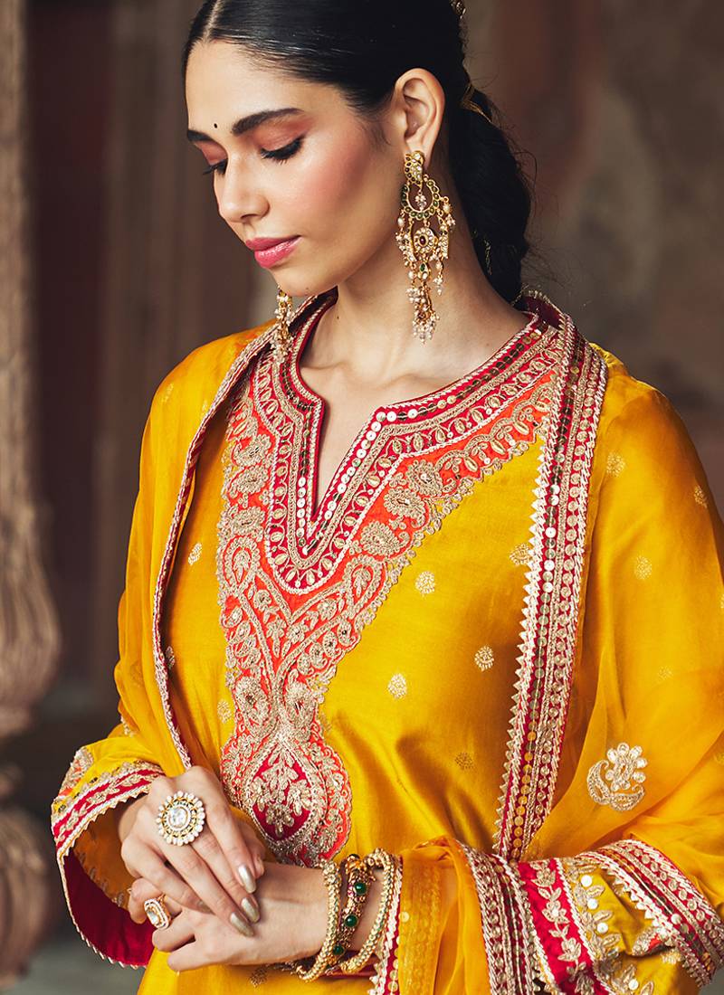 Product Name | Mustard Embroidered Chanderi Silk Kurta Set With Dupatta | |