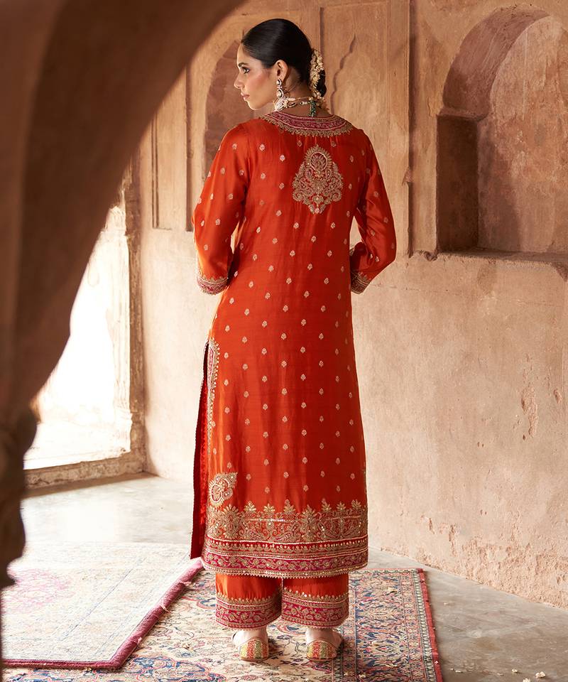 Product Name | Orange Embroidered Chanderi Silk Kurta Set | |