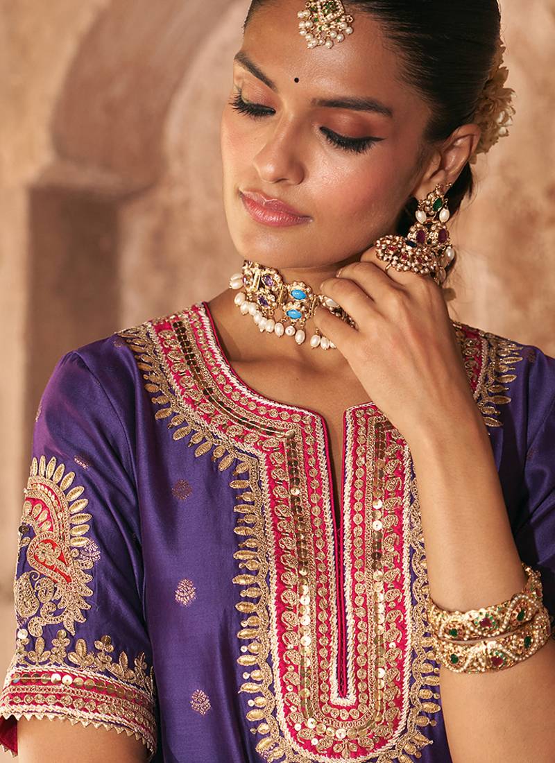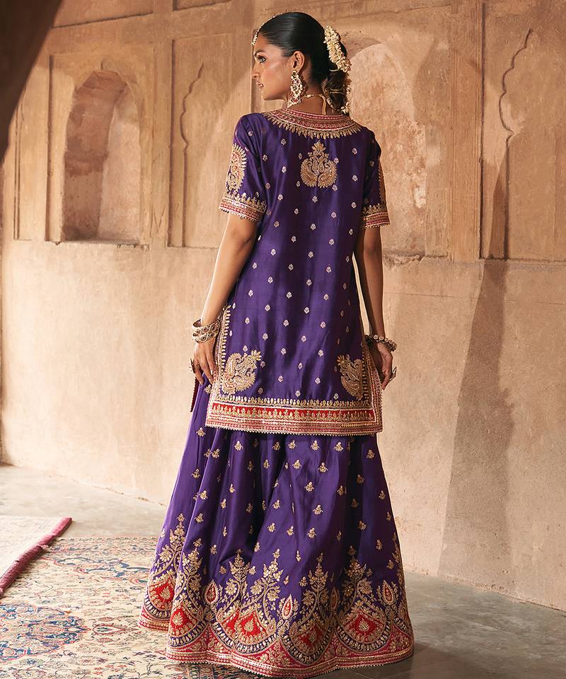 Product Name | Purple Embroidered Chanderi Silk Sharara Set | |