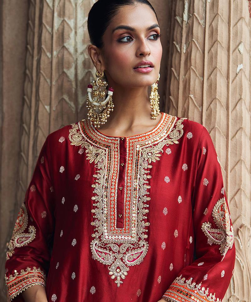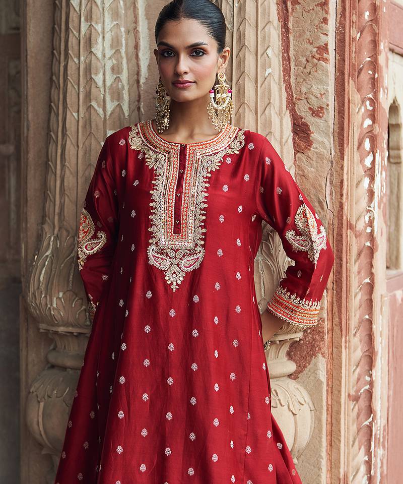 Product Name | Red Embroidered Chanderi Silk Kurta Set | |