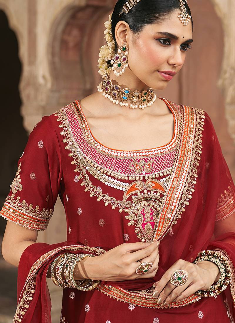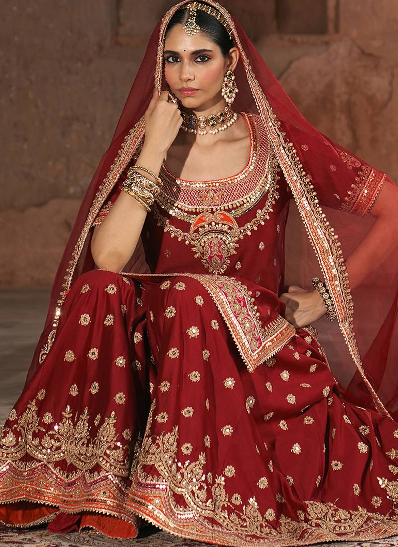 Product Name | Red Embroidered Chanderi Silk Sharara Set | |