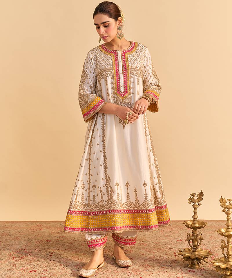 | Product Description | This White Embroidered Silk Anarkali Set With Dupatta Exudes Timeless Elegance And Graceful Charm. Crafted From Luxurious Silk Fabric, It Features Intricate Embroidery That Adds A Refined, Regal Touch. Paired With A Matching Dupatta, It Offers A Flowing Silhouette, Premium Comfort, And Classic Ethnic Appeal For Festive Occasions.