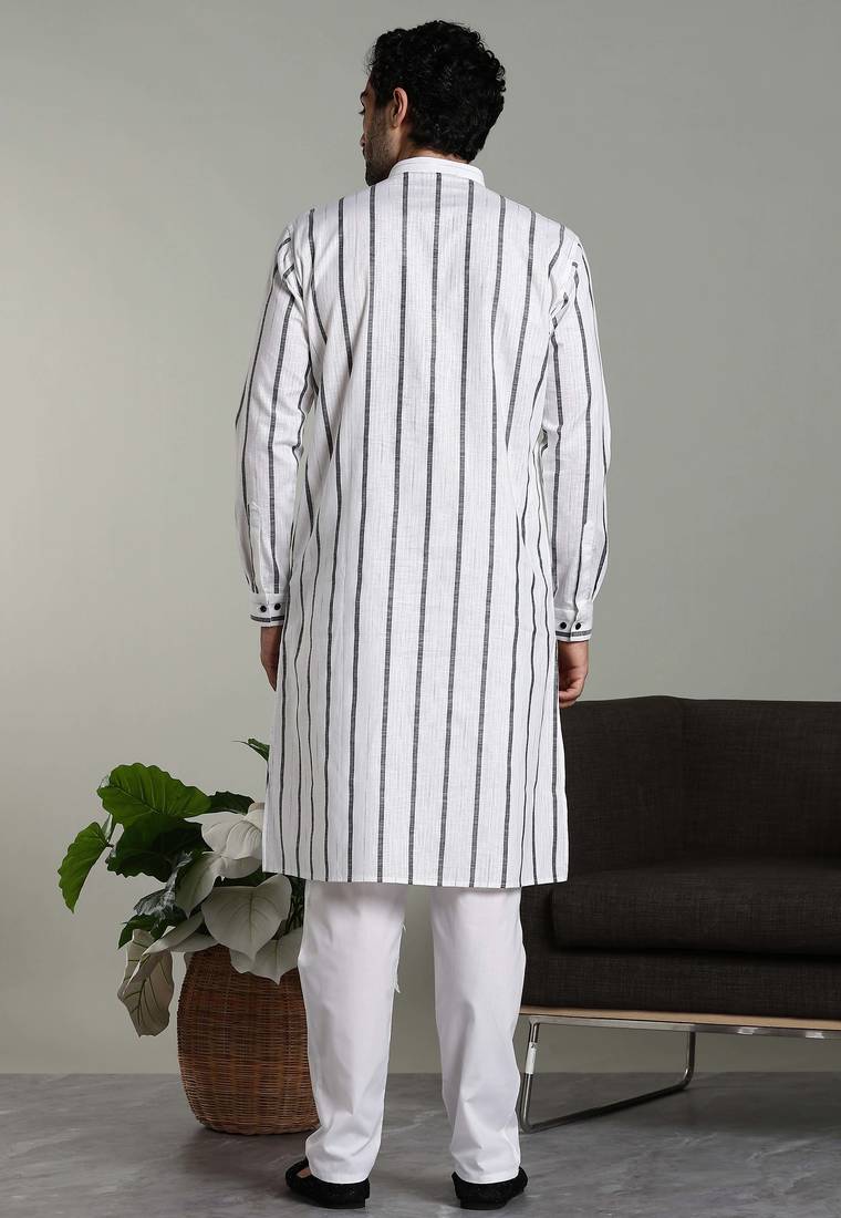 Product Description | Stylish Cotton Linen Kurta With Grey Tripes Paired With Cotton Bottom Perfect For Causal & Festive Wear |