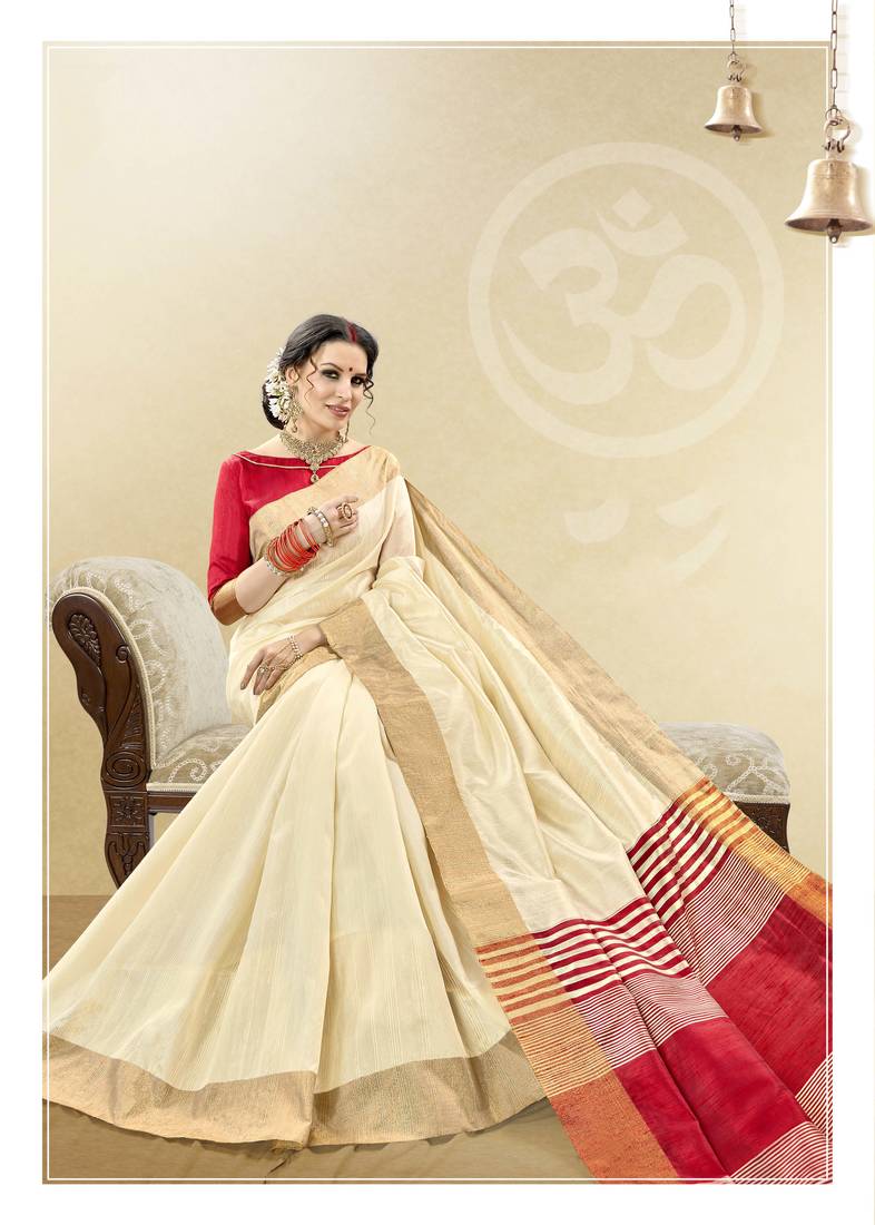 Product Name White Woven Cotton Silk Saree With Blouse