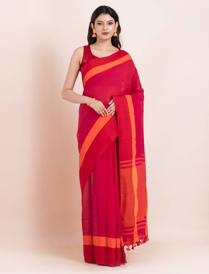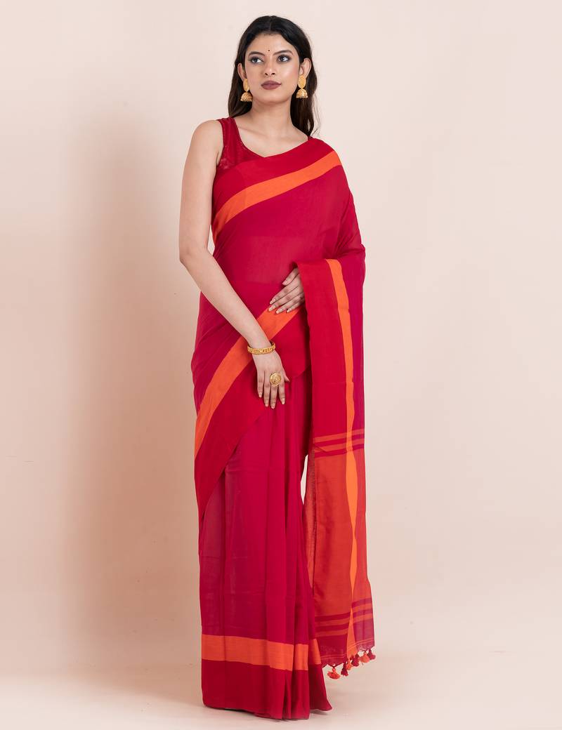 Red-bengal-cotton-saree-without blouse piece