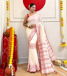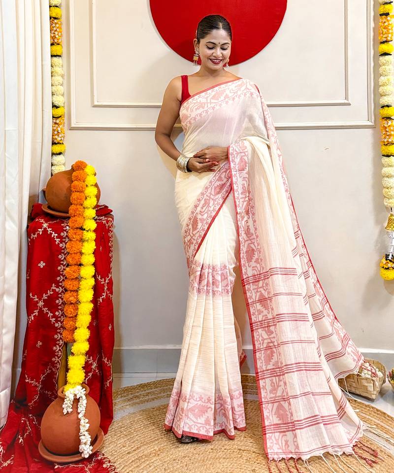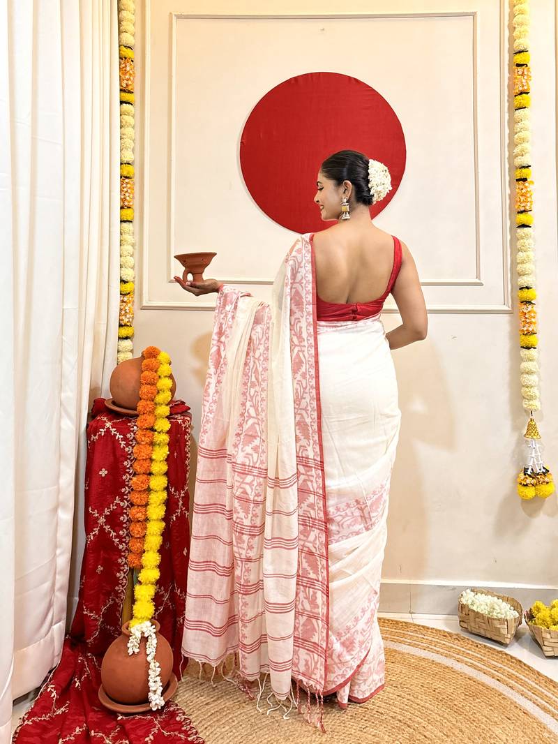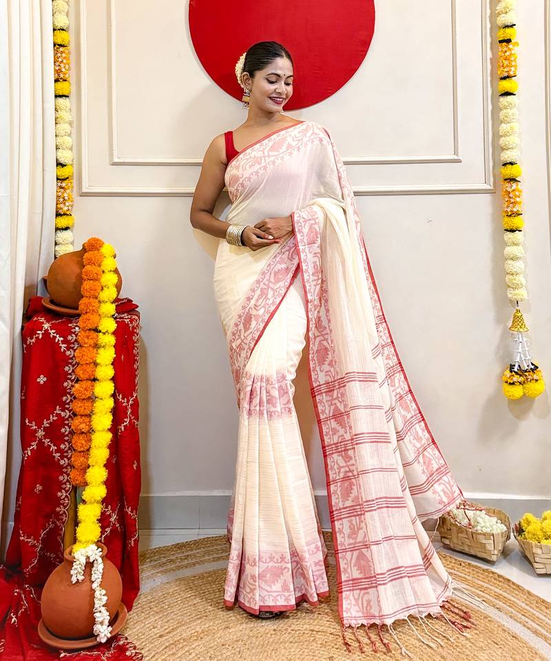 Product Name | White Red Bengal Cotton Saree Without Blouse Piece | |