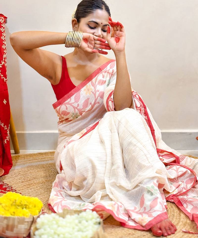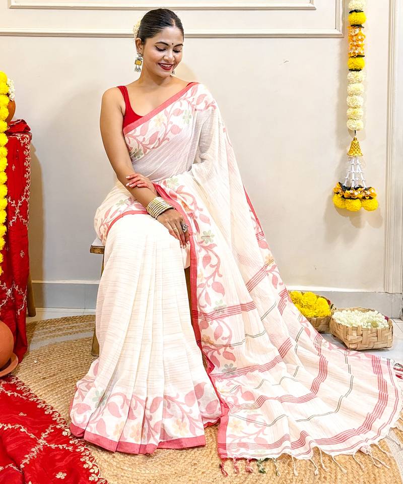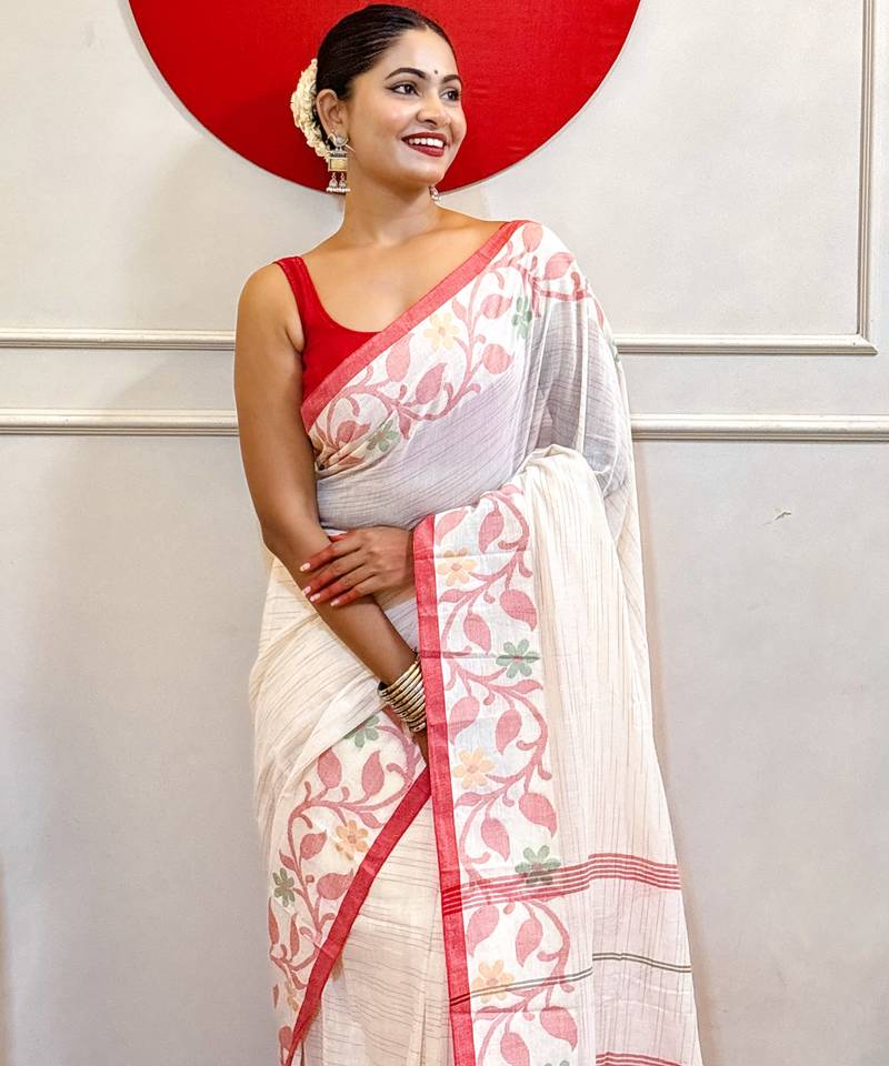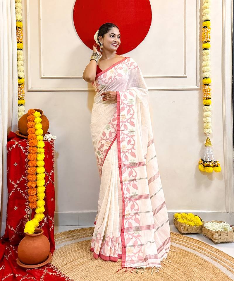 Product Name | White Red Bengal Cotton Saree Without Blouse Piece | |