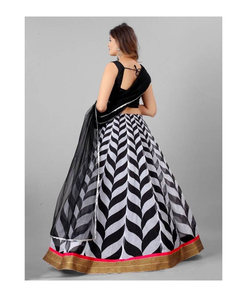 Black and white semi stitched lehenga and unstitched blouse with dupatta