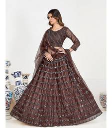 Brown & silver embroidered semi stitched lehenga & unstitched choli with dupatta