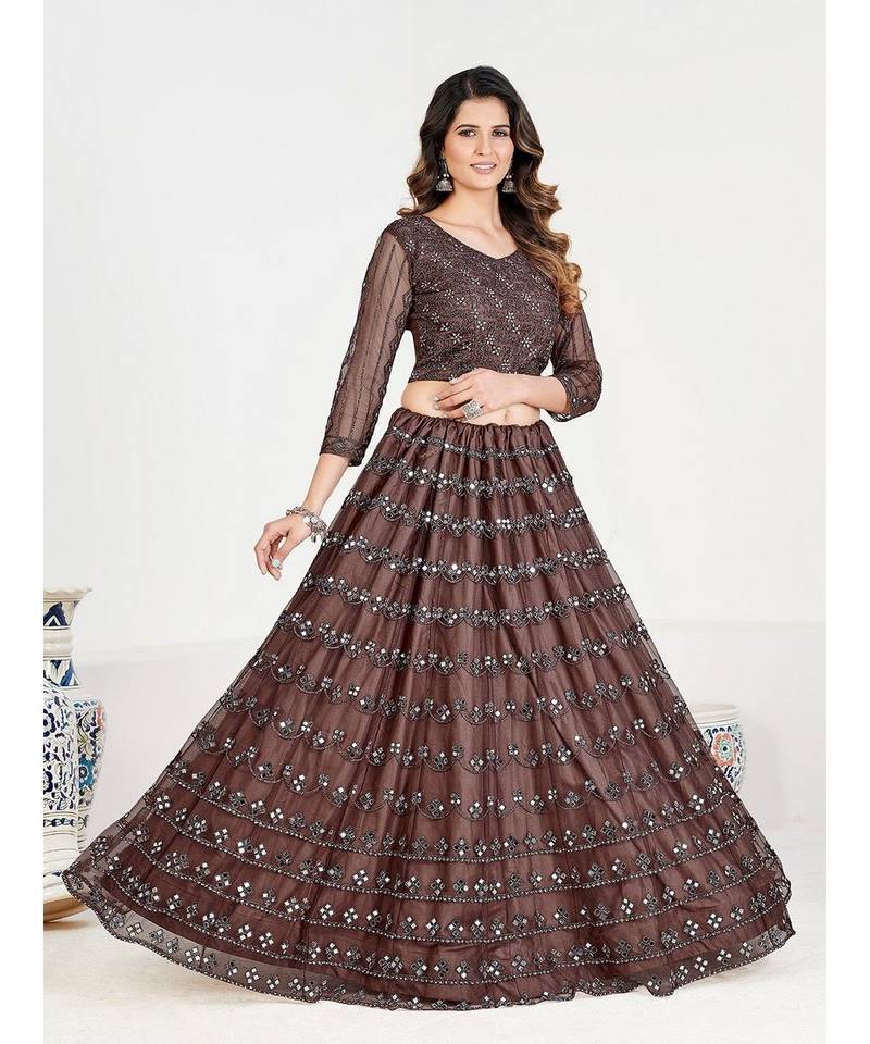 | Product Name | Brown & Silver Embroidered Semi Stitched Lehenga & Unstitched Choli With Dupatta | |