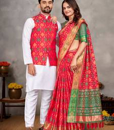 | Product Name | Elegant Men's Kurta With Jacquard Silk Koti & Women's Red Saree Set | |