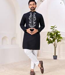 | Product Name | Ethnic Black Roman Silk Kurta With Front Embroidery | |