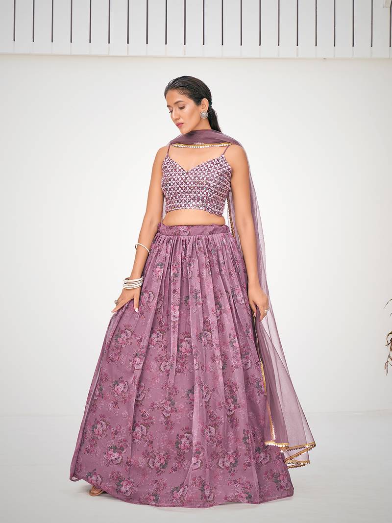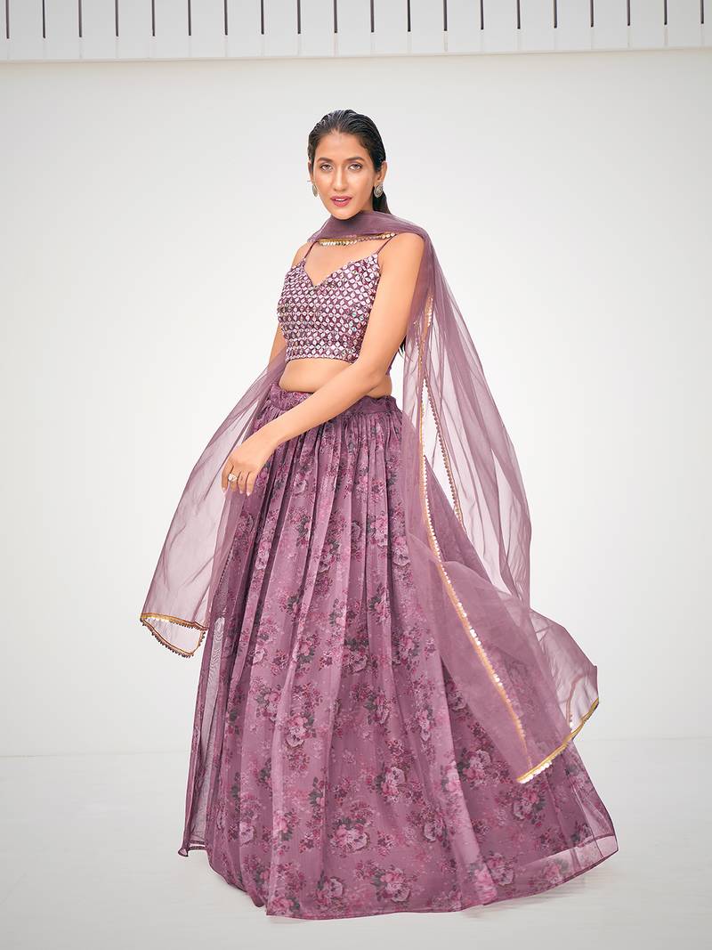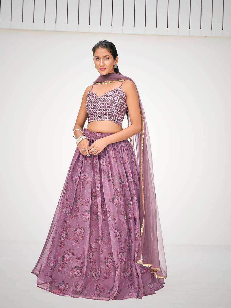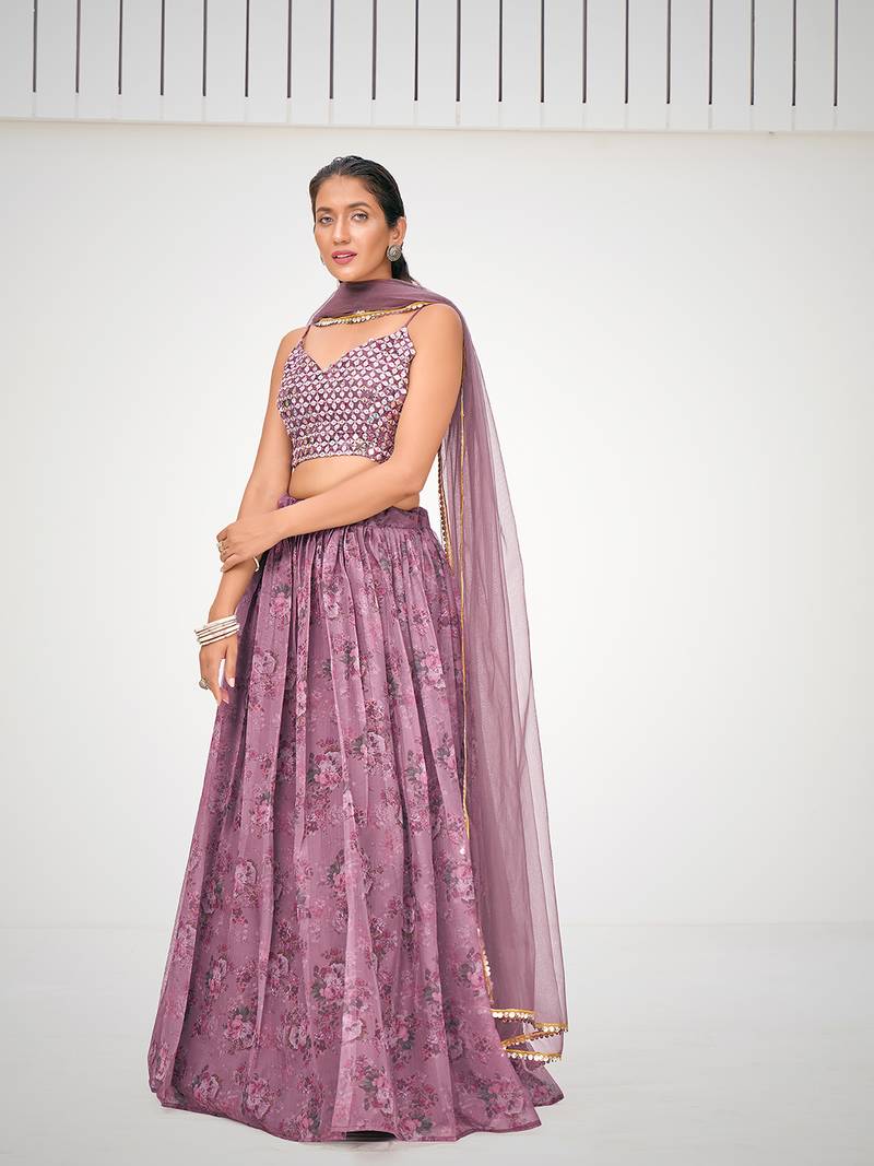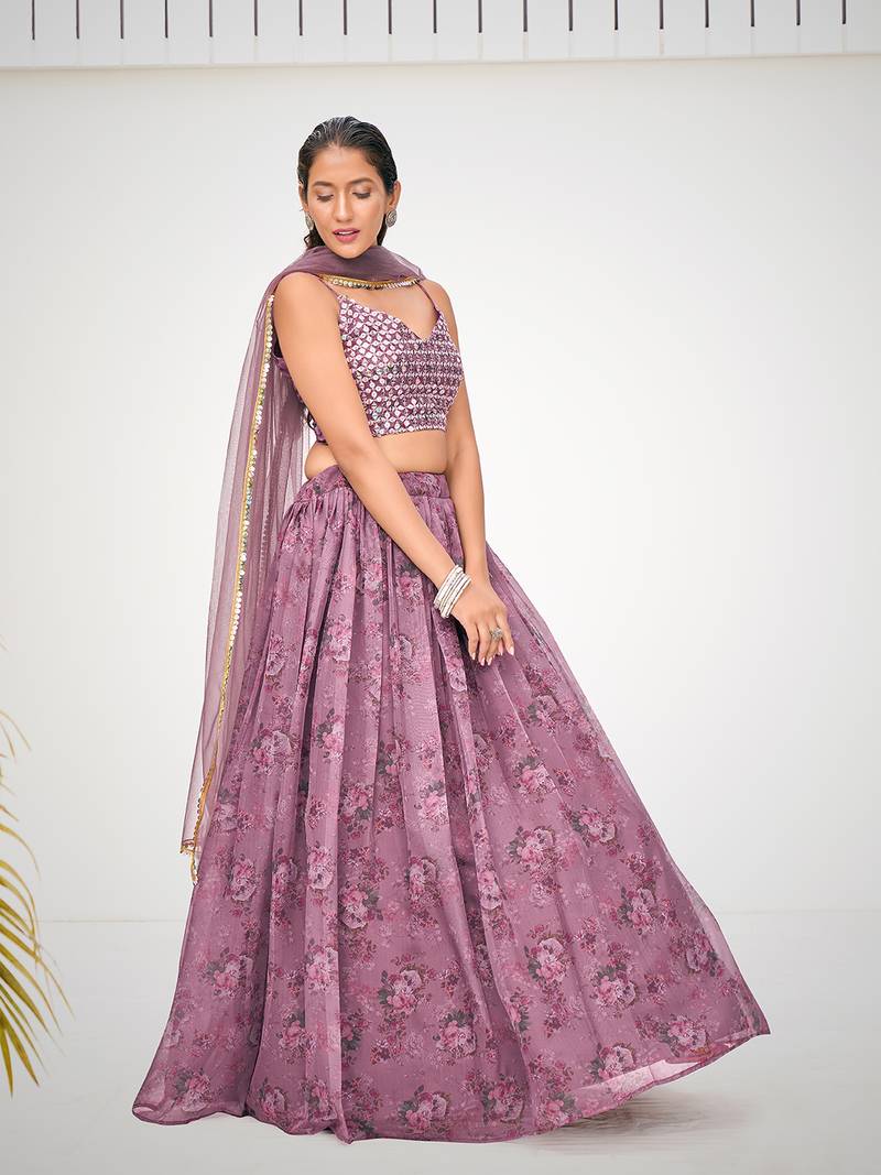 | Product Name | Fashionable Mauve Colored Organza Floral Printed Party Wear Lehenga Choli | |