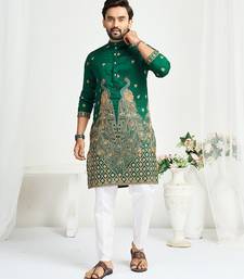 | Product Description | Step Into Timeless Elegance With This Green Embroidered Men's Kurta, Highlighted By Majestic Peacock Style Embroidery On The Front. Designed For Festive Celebrations And Wedding Functions, This Kurta Combines Traditional Craftsmanship With Modern Flair. The Rich Green Hue And Detailed Thread Work Reflect Cultural Sophistication, Making It A Standout Piece. Style It With Classic Bottoms To Complete Your Regal Ethnic Look. |