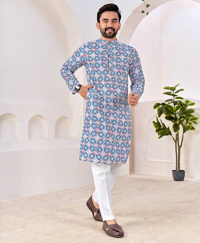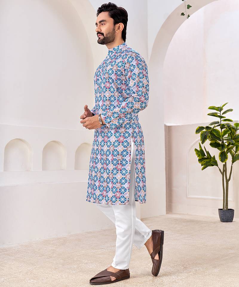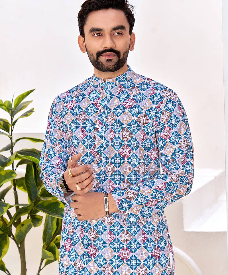 Men's stylish cotton multi color printed kurta for festive & casual wear