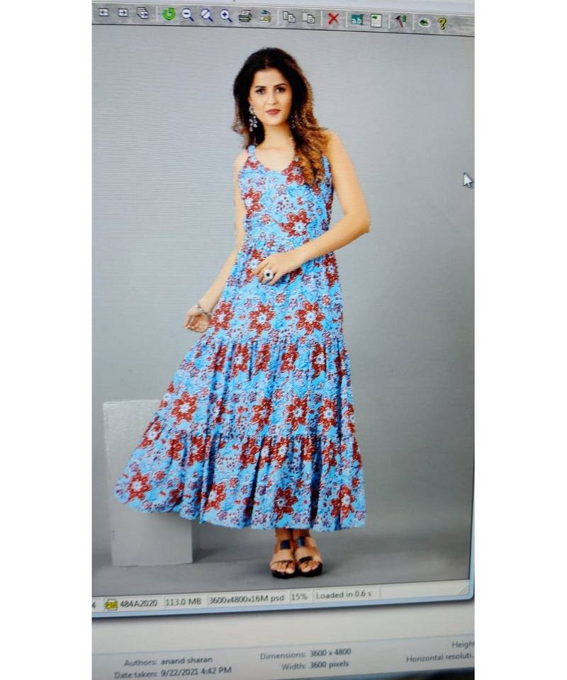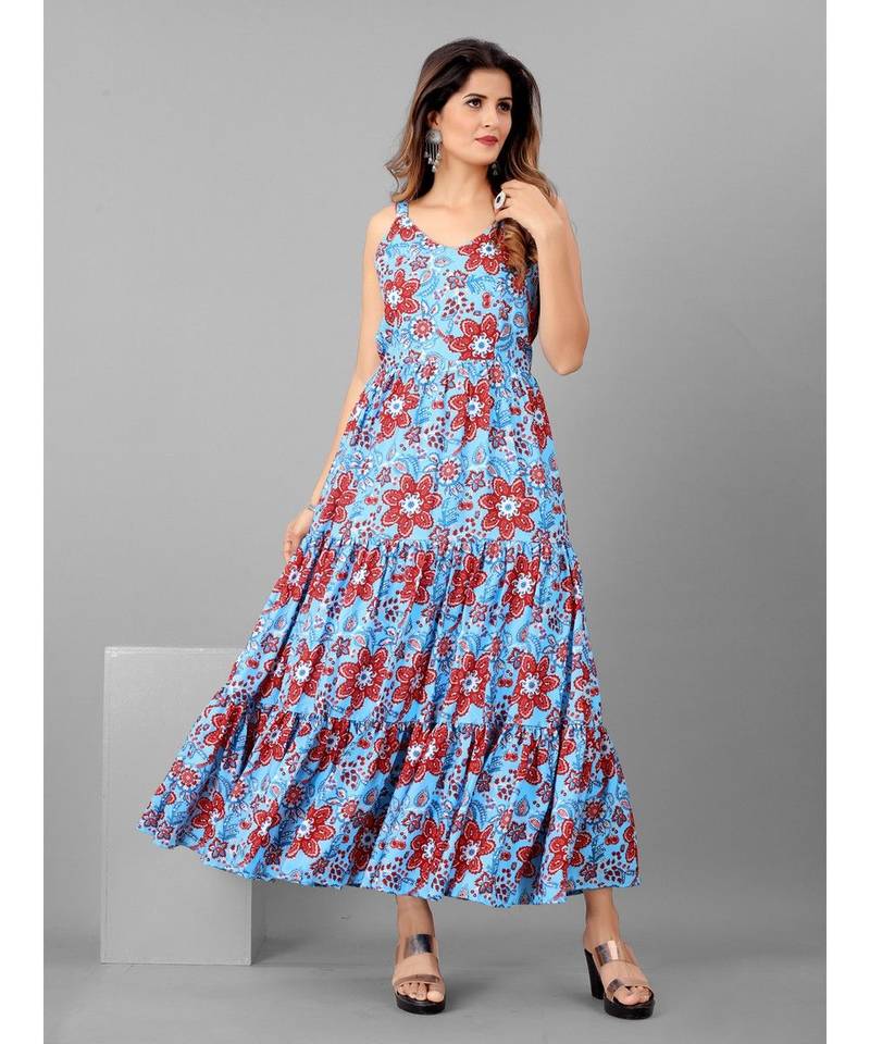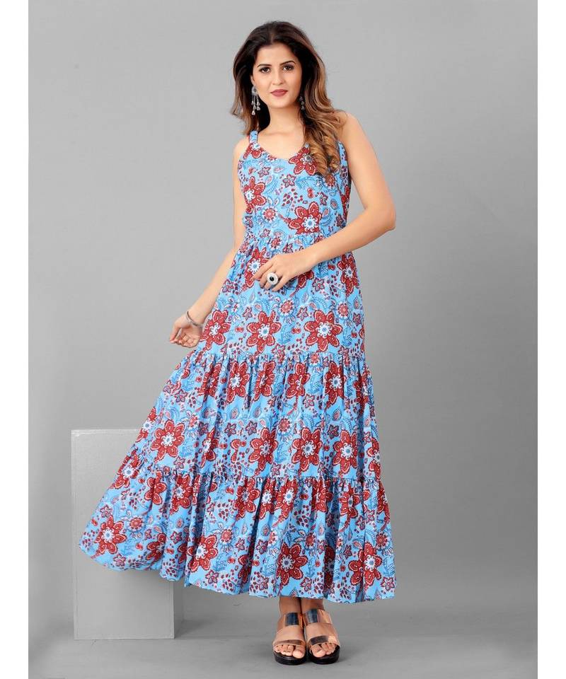 | Product Description | Blue And Red Printed Woven Maxi Dress, Has A Round Neck, Sleeveless, An Attached Lining, Flared Hem |