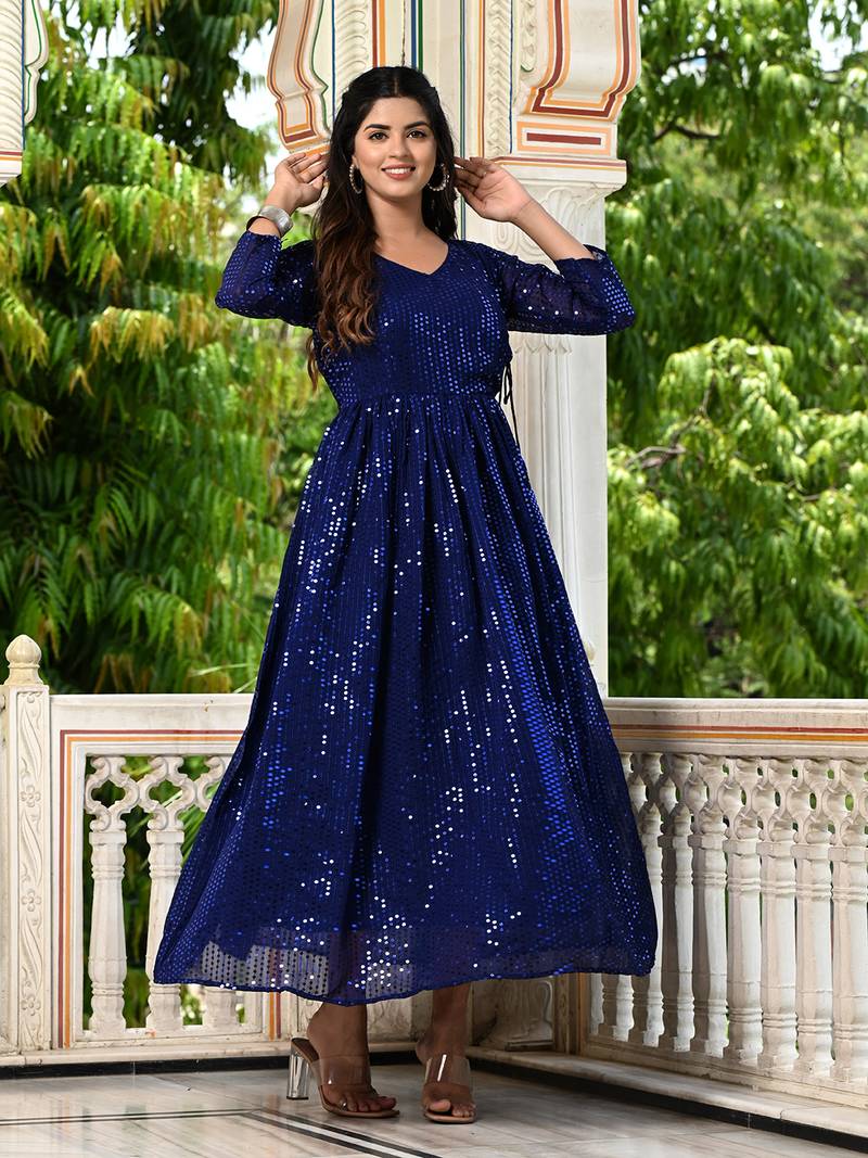 | Product Description | Navy Blue Sequence Party Wear Dress. It Is Sure To Fetch You Compliments From All. Join The League Of Fashion Elites Flaunting The Staple. |