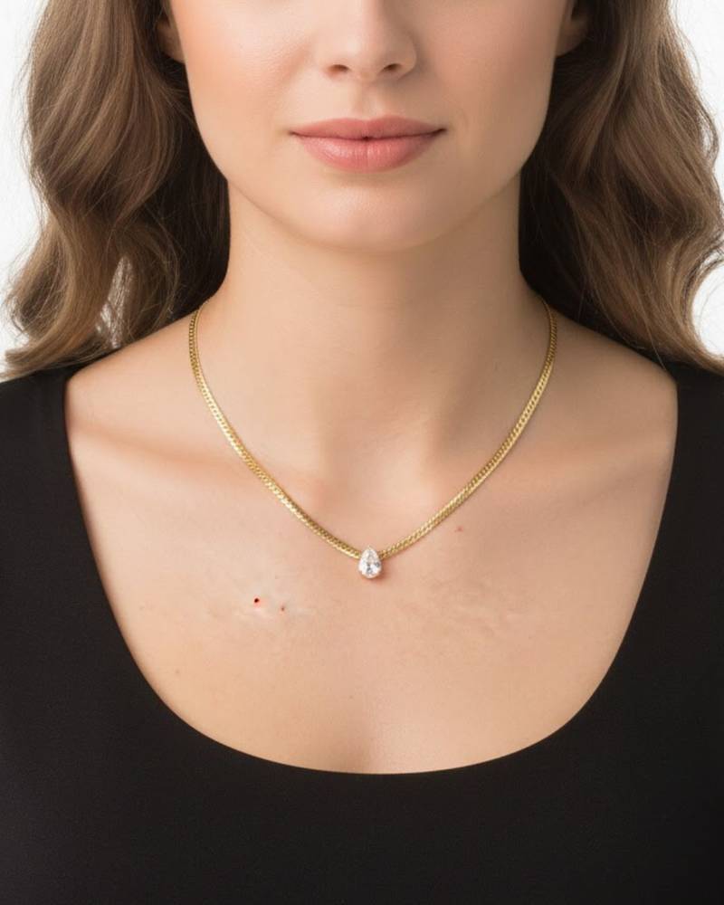 | Product Description | This Snakce Chain Necklace With A Pear Shaped Solitaire Stone Looks Stunning And Elevates Any Casual Or Semi Formal Outfit! |