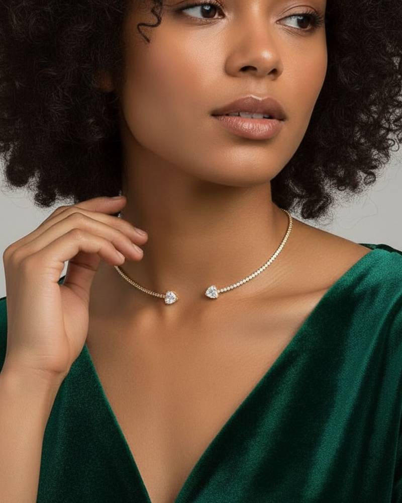 | Product Description | Add A Touch Of Romance And Sparkle To Your Look With This Rhinestone Heart Collar Choker. Designed To Make A Bold Statement, This Choker Features A Stunning Heart Shaped Rhinestone Centerpiece That Catches The Light With Every Movement. Perfect For Evening Wear Or Special Occasions, This Choker Combines Elegance And Glamour, Making It A Must Have Accessory For Any Fashion Forward Wardrobe. The Adjustable Collar Design Ensures A Comfortable Fit, While The Sparkling Rhinestones Add A Luxurious Finish To Your Outfit. |