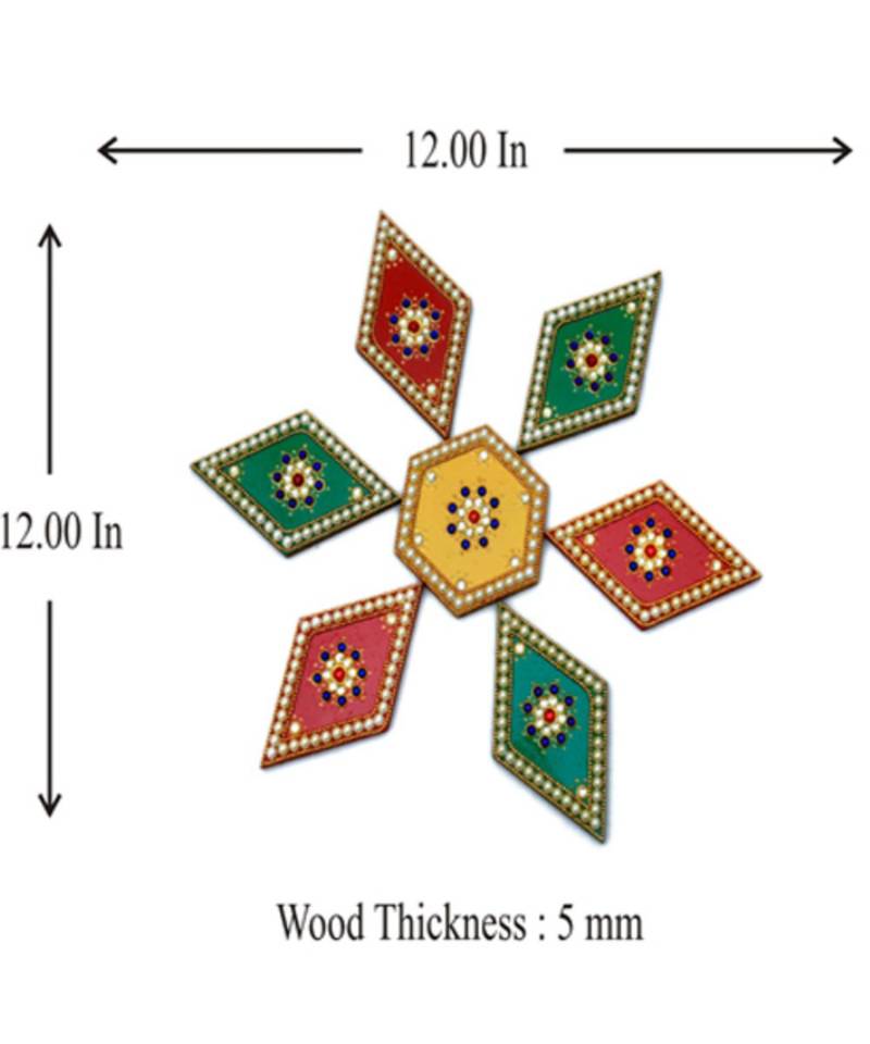 | Product Name | Yellow, Green, Red Colour Wood And Stone Art Hexagon And Leaf Shape Rangoli | |