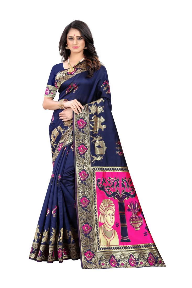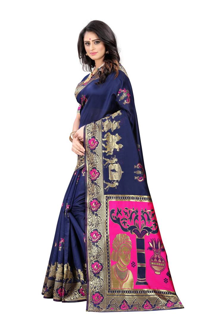 | • | Saree | : | Color- Navy Blue / Fabric- Art Silk |
