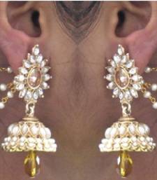 | Product Name | Yellow Drop Jhumka With Pearl Ear Chain Earring | |