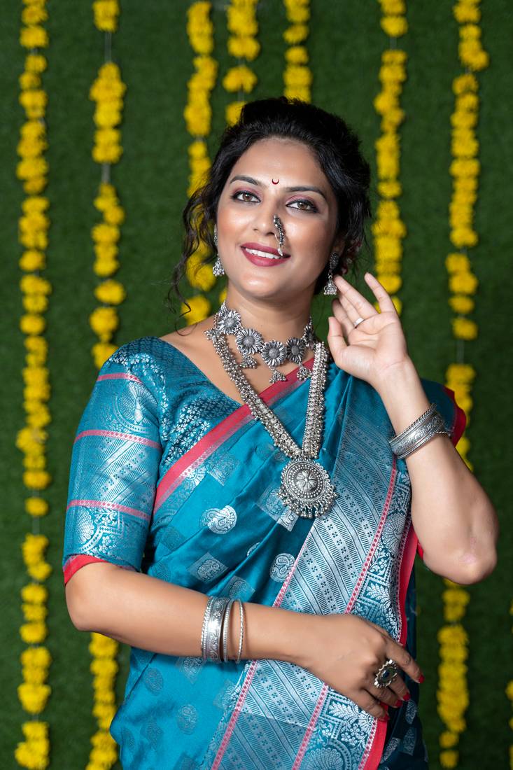 | • | Saree | : | Color- Sky Blue / Fabric- Banarasi Silk |
