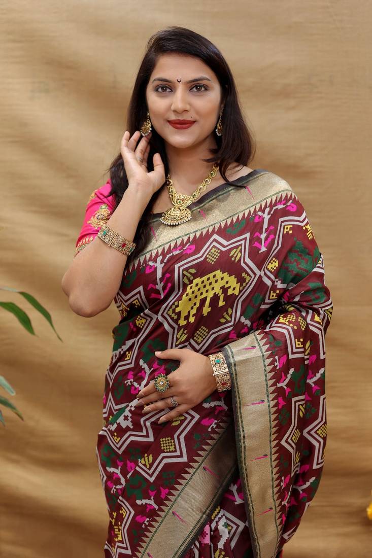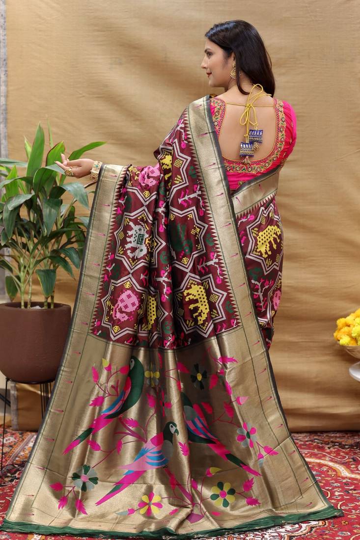 Wine beautiful paithani silk saree