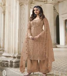 Light orange color designer fancy net fabric salwar suit in net fabric with embroidery as semi stitched