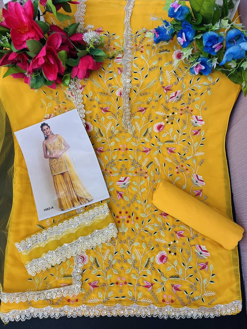 Yellow faux georgette sharara salwar suit collection un stitched unstitched