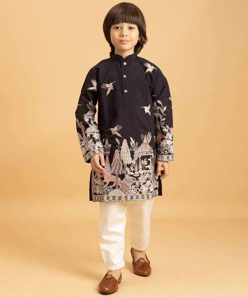 | Product Name | Black Viscose Silk Thead With Sequins Embroidered Work Wedding Function Festival Party Boys Straight Kurta Pant | |