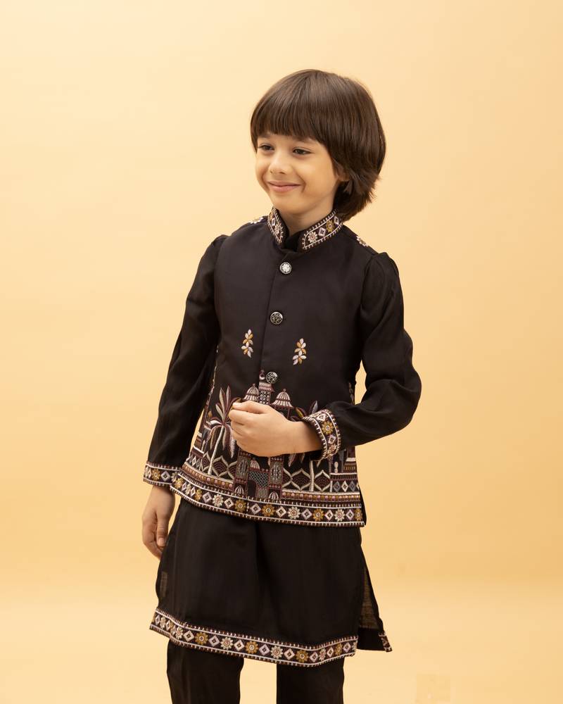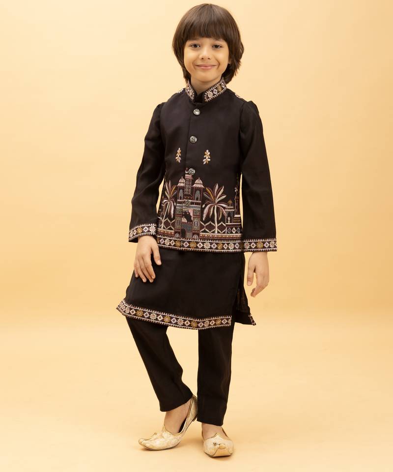 | Product Name | Black Viscose Silk Nehru Jacket Set With Sequins Embroidered Work | |