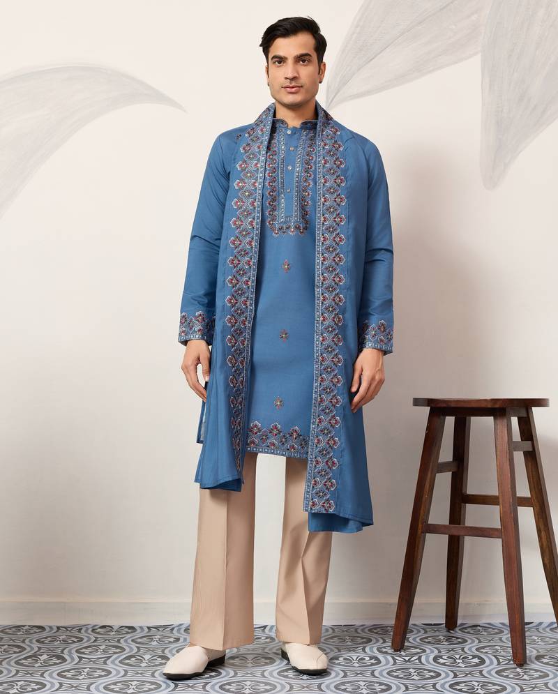 | Product Name | Blue Viscose Silk Thread & Sequins Embroidered Work Function Festival Marriage Party Wear Straight Kurta Dupatta | |