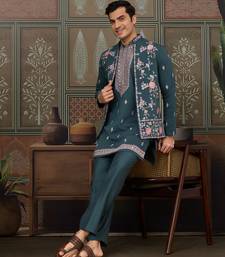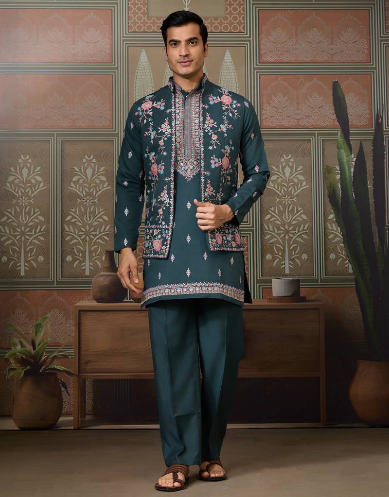 | Product Name | Green Silk Premium Thread & Sequins Embroidered Work Wedding Festival Party Wear Straight Kurta With Jacke And Pant | |